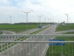 - Васильків. Автошлях М05 оминає Васильків через Глеваху. У 2006 році на 26 км автошляху збудовано транспортний вузол загальною вартістю 29,66 млн гривень, у складі якого є міст, що є продовженням дороги «Київ-Васильків». Це дозволило розмежувати транспортні потоки «Київ — Одеса» (інтенсивність руху 13 550 авто на добу) та «Київ — Васильків» (інтенсивність руху 6 940 авто на добу). В районі населеного пункту Глеваха автошлях має надземний пішохідний міст (27 м) та безпосередньо межує із пасажирським залізничним зупинним пунктом Глеваха (28 км).