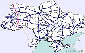 Доманове (на м.Брест) — Ковель — Чернівці — Тереблече (на м.Бухарест) — 530,2 км.