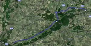 Починається на перетині з автотрасами Н12 та Т 1707, проходить через села Колонтаїв, Любівка, смт Краснокутськ, села Краснокутськ, Чернещина, Городнє, Козіївка, Полкова Микитівка, Губарівка і закінчується в місті Богодухів Р45 Р46.