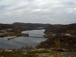 Міст через протоку між Мончеозером та Мончегубою озера Велика Імандра (≈92 м.)- Мончегорськ