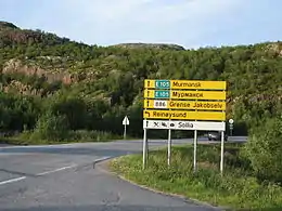 E105 в точці в'їзду до м. Заполярний з боку кордону