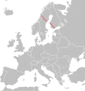 Маршрут дороги проходить по містах Му-і-Рана - Стуруман - Люкселе - Умео - Гольмсунд - Вааса - Тампере - Акаа - Гямеенлінна - Гельсінкі.