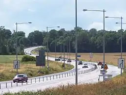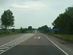 Розв'язка біля Тюрлеми. Тюрлема — праворуч («стара» дорога), Чебоксари — прямо («нова» дорога). Чувашія біля межі з Татарстаном