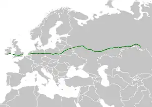 Основні пункти маршруту: Корк — Вексфорд — Суонсі — Кардіфф — Ньюпорт — Бристоль — Лондон — Гаага — Утрехт — Амерсфорт — Генгело — Оснабрюкк — Мелле — Ганновер — Магдебург — Берлін — Франкфурт-на-Одері — Познань — Варшава — Берестя — Мінськ — Москва — Рязань — Пенза — Сизрань — Жигульовськ — Тольятті — Уфа — Міас — Челябінськ — Курган — Петропавловськ — Омськ.