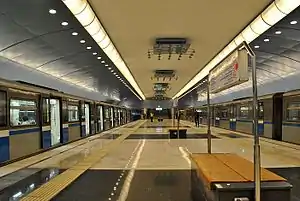 Ключова тематика оформлення інтер'єру станції — тема промисловості та авіабудування. Колійні стіни і склепіння пофарбовані у кольори неба, гармонійно поєднуються з яскраво-синім, чорним і помаранчевим кольорами. Освітлення платформи здійснюється світильниками прожекторного типу, розташованими по осі станції. Підлоги платформи і вестибулів оздоблені гранітними плитами по спеціальному рисунку.