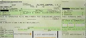 - Кожен польотний купон дійсний для перевезення пасажира і його багажу протягом зазначеного в ньому ділянки маршруту. Кількість польотних купонів залежить від обраного маршруту: один — рейс з А в Б; два — рейс з А в Б і назад або рейс з А в Б через С; більше двох. При реєстрації замість польотної купона видається посадковий талон із зазначенням місця в літаку.