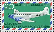 Поштова марка 1944 року. Літак Ha 139 поруч з логотипом Deutsche Lufthansa. Присвячена події: «25 років німецькій авіапошті 1919–1944»