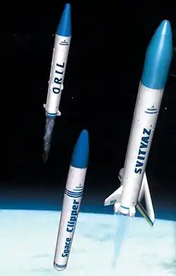 Протягом ряду років ДКБ «Південне» ім. М. К. Янгеля виконувало проєктні роботи по створенню ракет космічного призначення з повітряним стартом з літака-носія, що здійснює запуск ракети над нейтральними водами за межами України (теми Space Clipper, «Світязь» та «Оріль»).