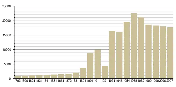 Динаміка населення (base Cassini de l'EHESS pour les nombres retenus jusque 1962[3], base Insee à partir de 1968 (population sans doubles comptes puis population municipale à partir de 2006)[4] · [5] ):