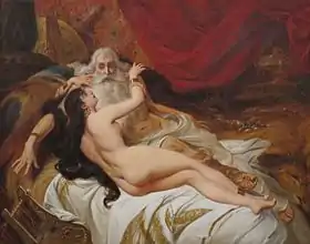 Цар Давид постарівся, став ветхий деньми, і хоч як його загортали покривалами, не міг зігрітися. І кажуть йому його слуги: «Нехай би пошукали нашому добродієві цареві молоду дівчину, нехай би вона царя доглядала й слугувала йому й лежала б при його грудях в ложі, і буде тепло нашому добродієві цареві.» От і шукали по всіх околицях Ізраїля гарну дівчину та й знайшли Авішагу, шунамійку, та й привели її до царя. Дівчина ж була гарна-прегарна; вона доглядала за царем і служила йому, але цар не спізнав її.[1]