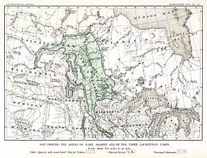 Протягом останнього льодовикового періоду, північ Північної Америки була покрита льодовиком, який поперемінно зростав та зменшувався зі зміною клімату. Цей континентальний льодовик, що утворився у період між 30 000 і 10 000 років тому, зараз відомий як Вісконсинське заледеніння і покрив велику частину центральної частини Північної Америки. Під час танення льодовика він утворив величезне передльодовикове озеро[2].