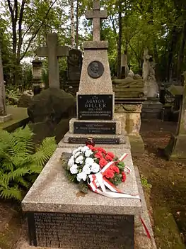 Агатон Ґіллер помер від пневмонії 1887 року у Станиславові (нині Івано-Франківськ). Був похований на Сапегівському кладовищі в цьому місті. Наприкінці 1970-х Івано-Франківська міськрада постановила зруйнувати кладовище. Постанову виконано, а 1981 року, з ініціативи членів Національного союзу Польщі, Ґіллерові останки перепоховали на Повонзківському цвинтарі. На могилі написано епітафію Теофіля Ленартовича: