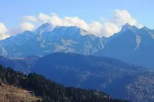 ![]() Вид в сторону хребта Грушевого і на вершини Агепста та пік Сочі | ||||