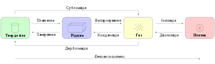 ![]() Чотири фундаментальні агрегатні стани речовини | ||||||||