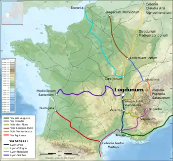 - дорога від Лугдунума через Сент до узбережжя Атлантичного океану;