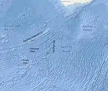 Хребет Агульяс простягається від північного краю височини Метеор до банки Агульяс на південь від ПАР. Хребет, однак, різко закінчується на невеликому плато у точці 40° пд. ш. 15° сх. д., де його перетинає витягнутий на північний схід спредінговий центр (риф Агульяс), який затух у ранньому палеоцені (61 Ма)[1]. Наявність короткоінуючої тектонічної плити між цими структурами вперше була запропонована LaBrecque & Hayes, 1979. Вони найменували її Мальвінською плитою і припустили, що вона існувала з 90 — 65 Ма до затухання спредінгового центру у котловині Агульяса. Плита розташована на трійнику прото-Буве.[2]