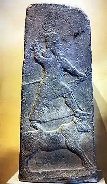 Адад — бог грози, вітру, дощу якого вшановували у Вавилонії та Ассирії, а також в стародавній Сирії арамеї під іменем Хадад, а в стародавній Палестині під іменем Адду. Відповідає шумерському Ішкуру. Зображувався з молотом в одній руці та пучком блискавок в другій. (Асирійська стела VIII ст. до н. е. з Арслан-Таша із зображенням Адада. Париж, Лувр (AO 1309))