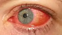 ![]() Одна з клінічних форм ураження при аденовірусній інфекції — епідемічний кератокон'юнктивіт Одна з клінічних форм ураження при аденовірусній інфекції — епідемічний кератокон'юнктивіт | |