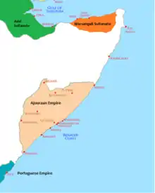 Держава заснована скотарським племенем аджуран (з групи племен хавія) та частково підкореним сомалійським напівосілим племенем джидду (з групи дігіль). Столицею країни було поселення Калафо (сучасне місто Келлафо (Ефіопія)), що знаходиться на торгових шляхах з Могадишо та Меркі в області Ефіопського нагір'я.