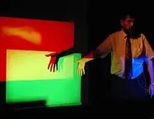 Інший приклад адитивного кольору можна знайти в перекриванні проєктованих кольорових вогнів, що часто використовується для освітлення театральних вистав, концертів, циркових шоу і нічних клубів.