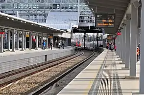 Конкорс — головний вестибюль вокзалу, розподільний зал для пасажирів, розташований на висоті 10 метрів над коліями. Його розміри складають 150 х 60 м. Проєкт розроблений архітектурною групою НВО «Мостовик» під керівництвом Олексія Даниленка у співпраці з архітектурним бюро GMP (Берлін).
