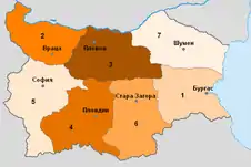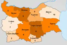 - У 1944 році Болгарію було поділено на 10 областей: Горноджумайську, Софійську, Пловдивську, Старозагорську, Бургаську, Варненську, Шуменську, Русенську, Плевенську та Врачанську.