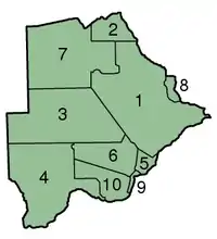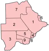 Територія Ботсвани поділяється на 9 округів: