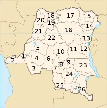 Демократична Республіка Конго поділяється на 26 провінцій.
