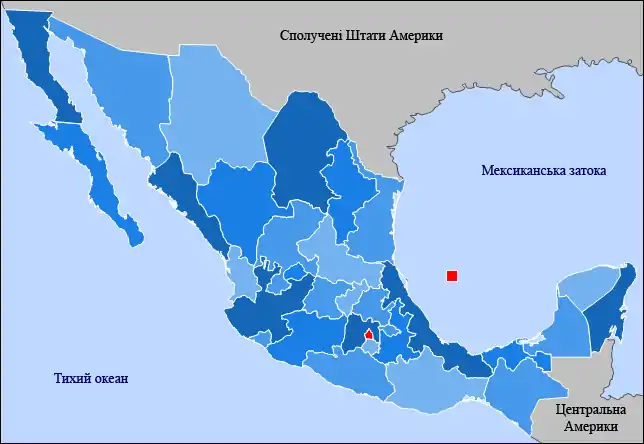 | 25. | Табаско | Tabasco | Вільяермоса | Villahermosa | 1824 | 2 013 000 | 24 747 |