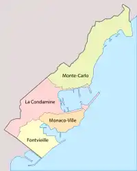 - Монако (старе місто), що відповідає однойменному адміністративному кварталу;