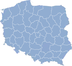 | Розташування | Воєводство | Місто воєводське |
