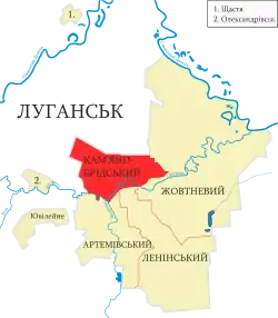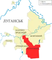 - Слов'яносербський район розділено між Алчевським районом: Зимогір'ївська міська громада та Кадіївська міська громада та Луганським районом: Луганська міська громада.