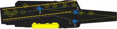 | Авіація | за проєктом — 26 МіГ-29К або Су-27К, 18 Ка-27ПЧ або Ка-29, 4 Ка-27РЛД, 2 Ка-27ПС фактично — 10 Су-33, з 2013 року 2 МіГ-29К, 2-4 Ка-27ПС | |