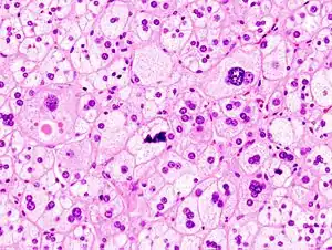 ![]() Мікрофотознімок альдостероми – адренокортикальної аденоми Мікрофотознімок альдостероми – адренокортикальної аденоми | |