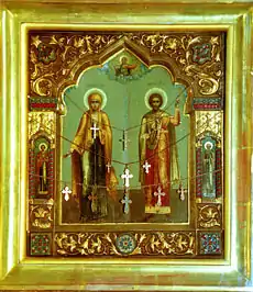 - Нижня чи зимова церква, освячена в честь мучеників Адріана і Наталії в Козельці (Україна)