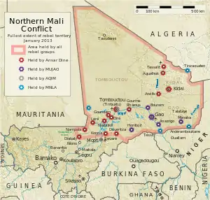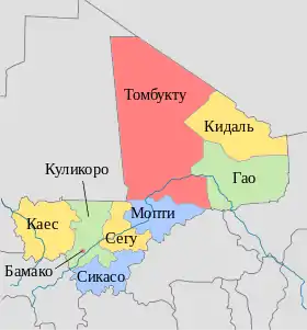 | * Область Мопті не підконтрольна повстанцям. | ||