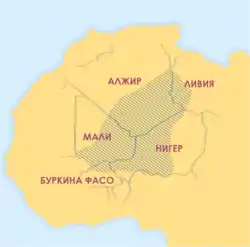 Азавад, Незалежна держава Азавад (бербер. ⴰⵣⴰⵓⴷ[1], араб. دولة أزواد المستقلة, фр. État indépendant de l'Azawad) — самопроголошена, невизнана держава в західній Африці, постала як держава туарегів. Незалежність було проголошено 6 квітня 2012 «Національним рухом за визволення Азаваду». Заявлений суверенітет над північно-східною частиною Малі: областями Кідаль, Тімбукту, Гао, які є частиною регіону Азавад — історичної батьківщини туарегів. [2][3] Населення — до 2 млн осіб, площа — близько 822 тис. км².