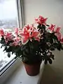 - Цвітіння: Дуже важливо вчасно обрізати й прищеплювати стебла. Обрізати починають із травня. В'януть всі слабкі й, навпаки, сильно розрослі пагони, особливо ті, які повернені в середину кімнати. Пам'ятайте, чим пишніший кущ, тим слабкіше в нього цвітіння. Молоді пагони прищеплюють, залишаючи на них по 4-5 листочків. З появою невеликих молодих пагонів біля квіткових бруньок їх обов'язково відривають. Для тривалішого цвітіння потрібно також тримати азалію в прохолоді. Квіткові бруньки в процесі розвитку й набрякання випускають бутони — по 2-4 бутона з кожної бруньки. Після того, як азалія перецвіте (а ще краще в міру відцвітання), насінні коробочки потрібно видаляти, щоб не послабити рослину. На відміну від багатьох інших рослин азалію під час цвітіння можна повертати й переносити. Але після того як азалія закінчила цвісти, її необхідно повернути на колишнє місце в те положення, у якому вона перебувала під час бутонизації. Під час цвітіння все відцвіле потрібно відразу ж видаляти, тоді азалія буде цвісти довше. При турботливому догляді азалія рік у рік цвістиме пишніше. Після цвітіння потрібно обрізати всі відцвілі квітки. Для формування пишного кущика обрізку пагонів необхідно проводити кілька разів раннім літом. Також прищипують молоді пагони, що утворюються безпосередньо перед або під час цвітіння.