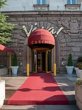 ![]() Вхід до казино "Sofia Hotel Balkan" в Софії, столиці Болгарії |