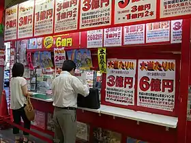 Квитки на Takarakuji можна придбати на стендах у магазинах у багатьох містах, при чому деякі торгові точки стають особливо популярними.[2] Квитки на лотереї вибраного числа також можна придбати в деяких банкоматах.