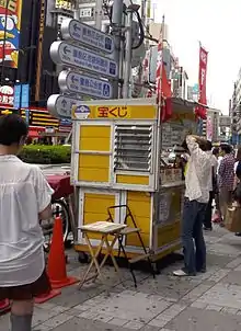 ![]() Гравці роблять ставки у пункті продажу таккаракудзі (takarakuji) |