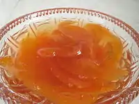 Персикове варення по-азербайджанському - в кулінарії Азербайджану чимало своєрідних за смаком солодощів, які поділяються на три підгрупи — борошняні, карамелеподібні і цукеркоподібні. У них міститься значна кількість добавок і прянощів: мак, горіхи, мигдаль, кунжут, імбир, кардамон, ванілін та інші. До борошняних виробів відносяться шекер-бура, пахлава, шекер-чурек, кураб'є бакинське, кята карабаська, мутакі шемахінські, пахлава нахічеванська. Національні борошняні вироби налічують понад 30 найменувань, причому в кожному районі є свої особливі вироби. Особливе місце займають шекінські солодощі. Це шекінські пахлава, пешвенк, тел (терхалва), гирмабадам, при виробництві яких використовується рисове борошно, цукор, ядра горіхів, вершкове масло, яєчні білки і прянощі.