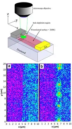 - Schreyvogel, C.; Polyakov, V.; Wunderlich, R.; Meijer, J.; Nebel, C. E. (2015). Active charge state control of single N-V centres in diamond by in-plane Al-Schottky junctions. Scientific Reports 5: 12160. Bibcode:2015NatSR...512160S. PMC 4503995. PMID 26177799. doi:10.1038/srep12160.