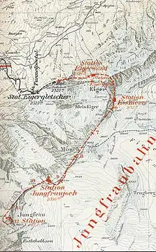 Після відкриття станції «Стіна Айгер» в 1903 році, Товариство Юнгфрау оголосило ще одну пропозицію щодо концесії на будівництво гілки від запланованої станції «Айсмеер» на Айгер, а саме канатної дороги від Айсмеер через перевал Айгерйох на вершину Айгер. Однак Федеральна рада Швейцарії погоджувалась на цей план лише за умови, що сама залізниця Юнгфрау більше не буде будуватись в напрямку Юнгфрау, на що товариство відмовилось пристати і скасувало плани щодо Айгеру.
