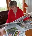 Айлі Кескітало читає газету «Ávvir» ― єдину у світі щоденну газету північносаамською мовою
