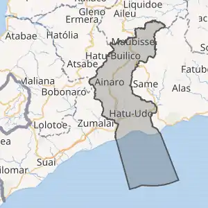 Межує з районами Айлеу (на півночі), Мануфагі (на сході), Кова-Ліма (на південному заході), Бобонару (на заході) і Ермера (на північному заході). На півдні омивається водами Тиморського моря. На території району розташована найвища точка Східного Тимору — гора Татамайлау (2 963 м), яка знаходиться поблизу з кордоном району Ермера.