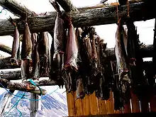 Лосося ловили у кількостях більших порівняно з тим, що можна було з'їсти негайно, тому надлишок риби сушили. Першим кроком було видалення голови та внутрішніх органів риби, рибу потім сушили на решітці на вулиці перед тим як її коптити. Спіймані влітку пструг (icaniw) та палія (tuksis), сушилися на вогні. Цю сушену рибу вживали в їже напряму або розмочуючи у воді та додаючи як інгредієнт у супи.[7]