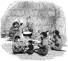 Коли гості запрошувалися до столу, головна хазяйка дому пропонувала їжу і говорила ipeyan, тобто «Будь ласка, їжте». Гості висловлювали свою подяку, і, коли це була така цінна їжа, як ведмеже м'ясо, вони перед тим як споживати їжу підносили її до лобу. Коли не було гостей, сім'я нічого не говорила перед їжею. Після закінчення їжі було прийнято говорити hunna, щоб висловити свою подяку за неї.[2]