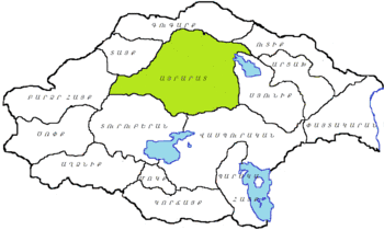 - Арац або Арацо когм область Арац) — у передгір'ях Сюніка, на південний схід від Урцу, вздовж правого берега річки Арпанял;