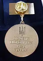 - Зворотний бік медалі містить Тризуб і напис «Академія економічних наук України».